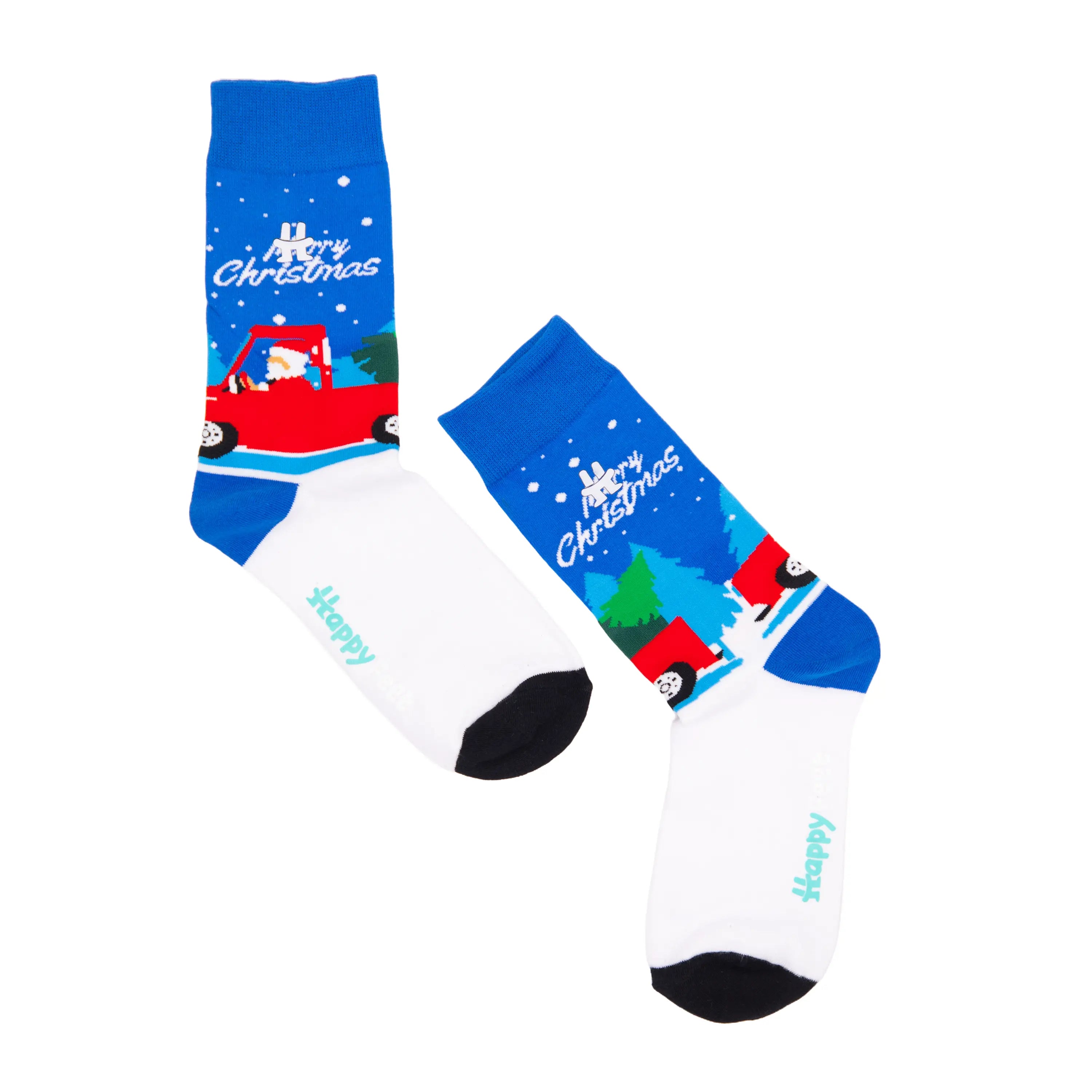 Hit the festive season in style with Santa On Wheels, a standout favourite from the Happy Feet Christmas Collection. Featuring Santa cruising in his bright red pickup truck through snowy skies and pine-filled winter scenery, this pair brings a fun, modern twist to classic Christmas cheer.